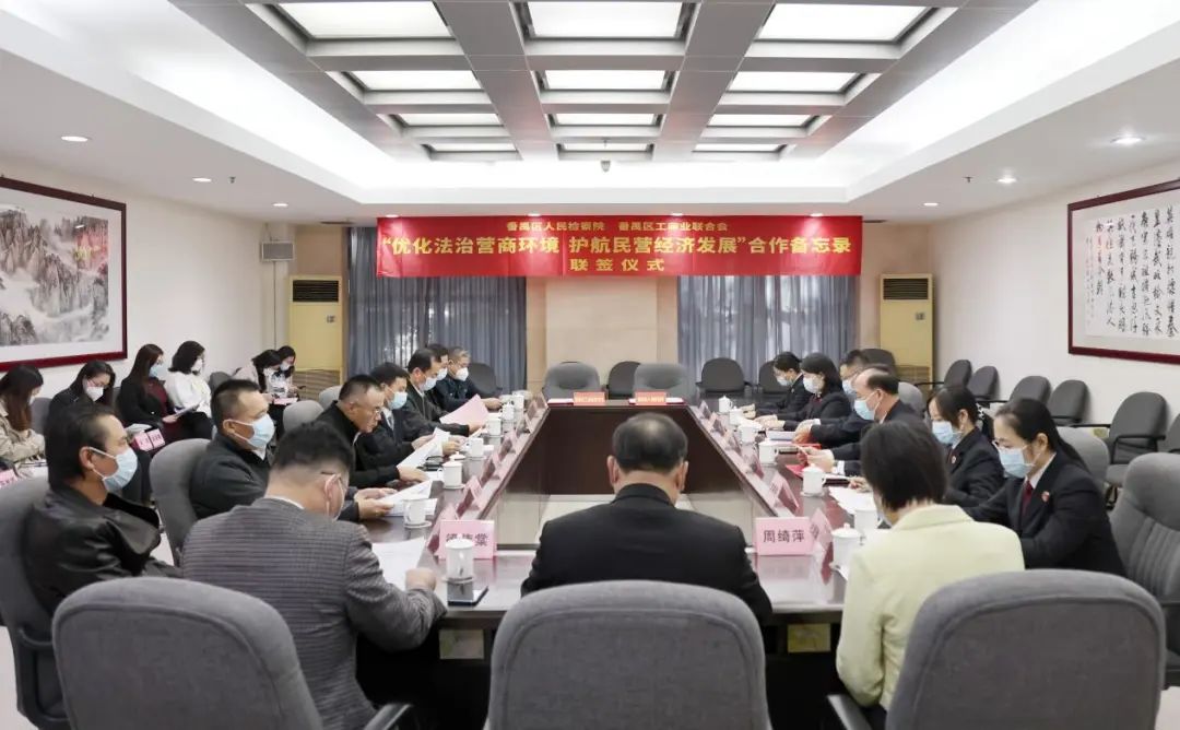 为进一步优化法治营商环境,深化企业合法权益保护,12月8日上午,番禺区人民检察院与番禺区工商联举行联签仪式,共同签署“优化法治营商环境 护航民营经济发展”合作备忘录。区检察院党组书记、检察长陈宏,区工商联主席、区总商会会长王锐祥,区委统战部副部长、区工商联党组书记、常务副主席岑镜洪,区工商联常务副主席王锦荣,企业家代表以及相关负责同志出席此次活动。