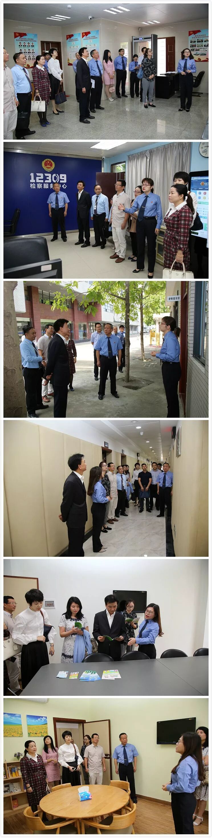 在市检察院党组成员、副检察长罗楚雄的陪同下,评议团参观了案管大厅、12309检察服务中心、未成年人检察工作室等场所,查看了各场所悬挂的宣传栏以及现场放置的普法手册,了解了市检察院在案件信息公开、服务律师阅卷、接待群众来访、保护未成年人等方面的工作,亲身体验了电子卷宗查询系统、检务公开触摸屏等便民设施。