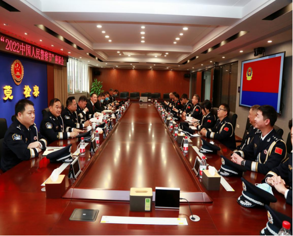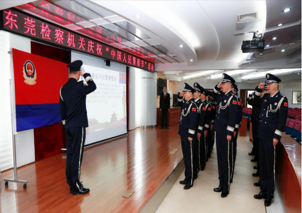 2022年1月10日,在第二个“中国人民警察节”到来之际,东莞市人民检察院组织两级院司法警察开展了“特制MV”“对警旗宣誓”“慰暖警心座谈会”等一系列活动,并于当天开通“东检应急警务专线7110”。市院党组成员、副检察长曾超宇出席活动。